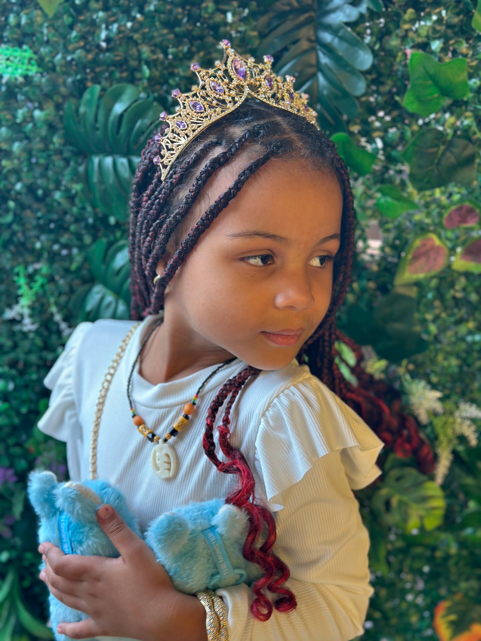 Strasssteine in lila, Diadem in golfarben (wie im Bild).