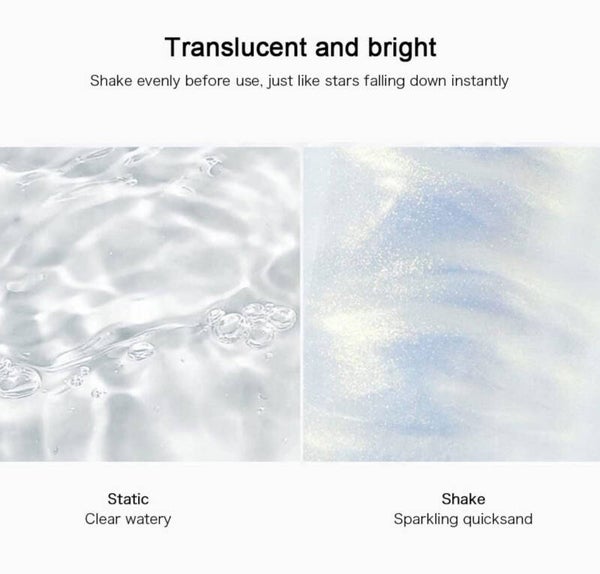- ăFeinzerstäubungă Fügen Sie blitzfeine Partikel hinzu, schütteln Sie vor Gebrauch, der Wassernebel wird wie Dampf fein zerstäubt, das Make-up wird in einem Film fixiert und der Teint wird aufgehellt.